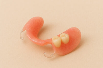 金属の留め具(クラスプ)を使用しない審美性に優れた部分入れ歯です。金具が目立つのを避けたい方に適しています。この入れ歯は装着時でも自然な口元を保ち、金属アレルギーの方でも安心して使用できます。